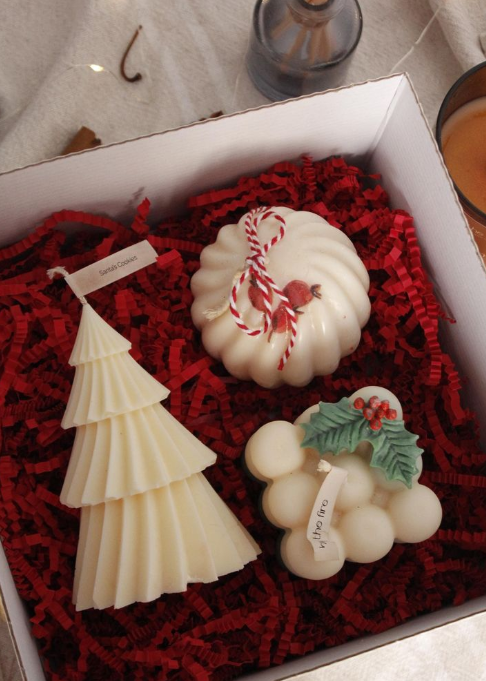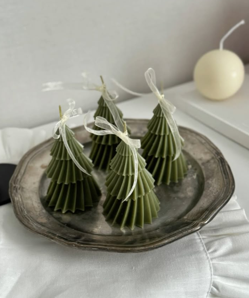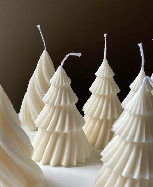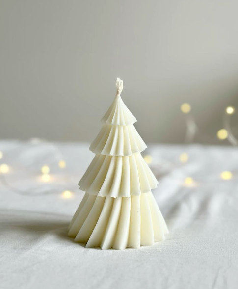 Julgran är ett handgjort, skulpturalt blockljus format som en stiliserad gran med mjuka, veckade “grenar”. En stämningshöjare på bordet, i fönstret eller som del av din vinterdukning.
