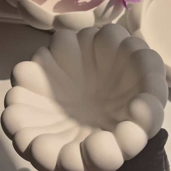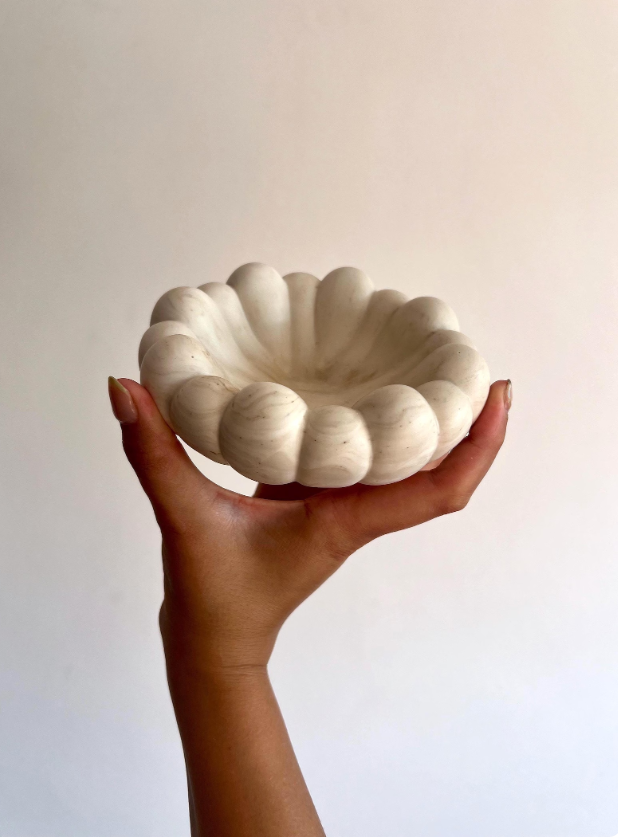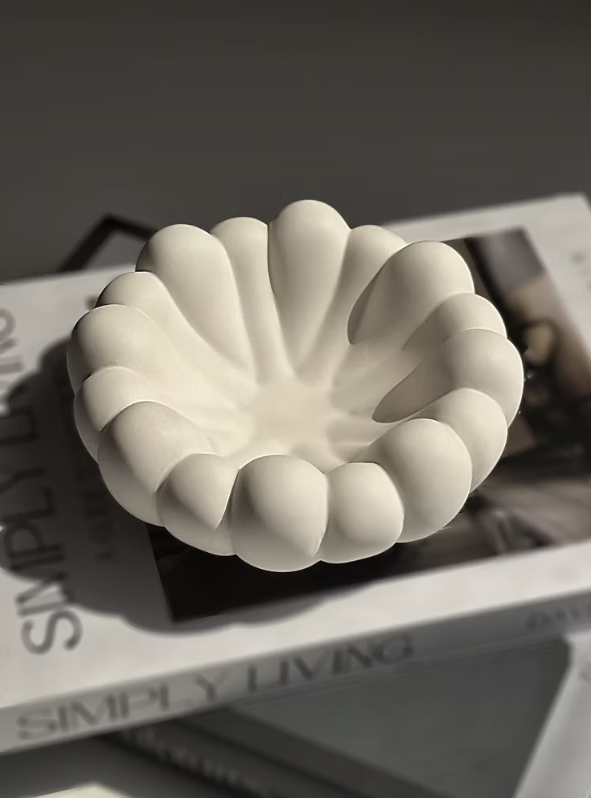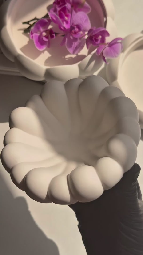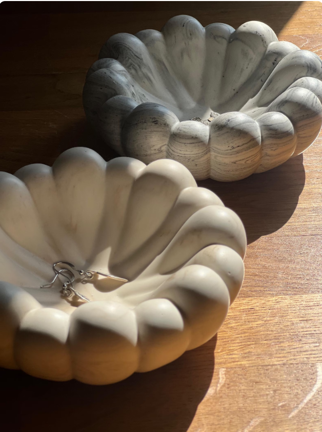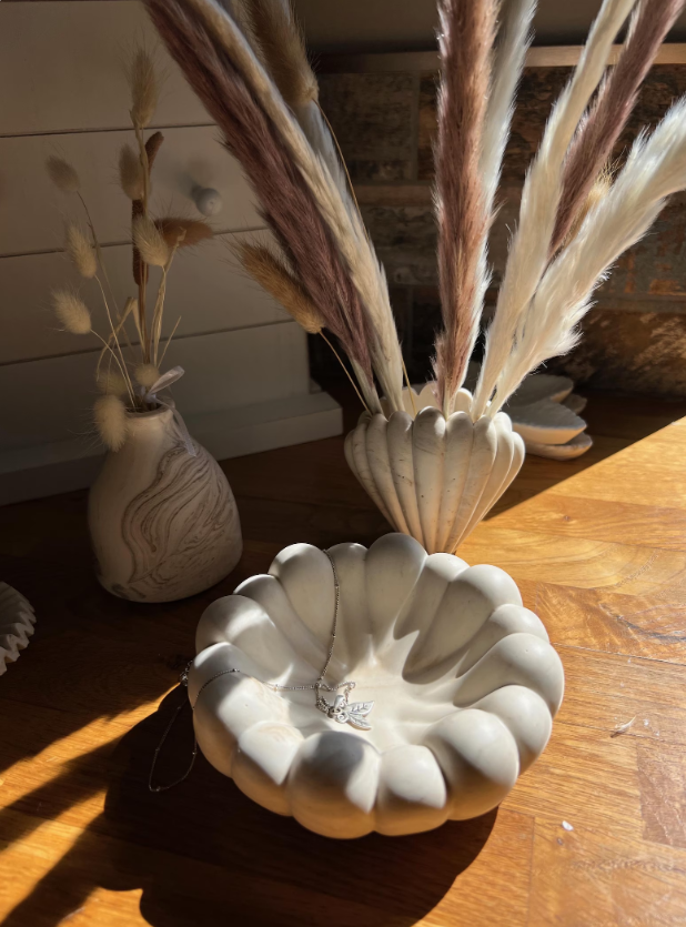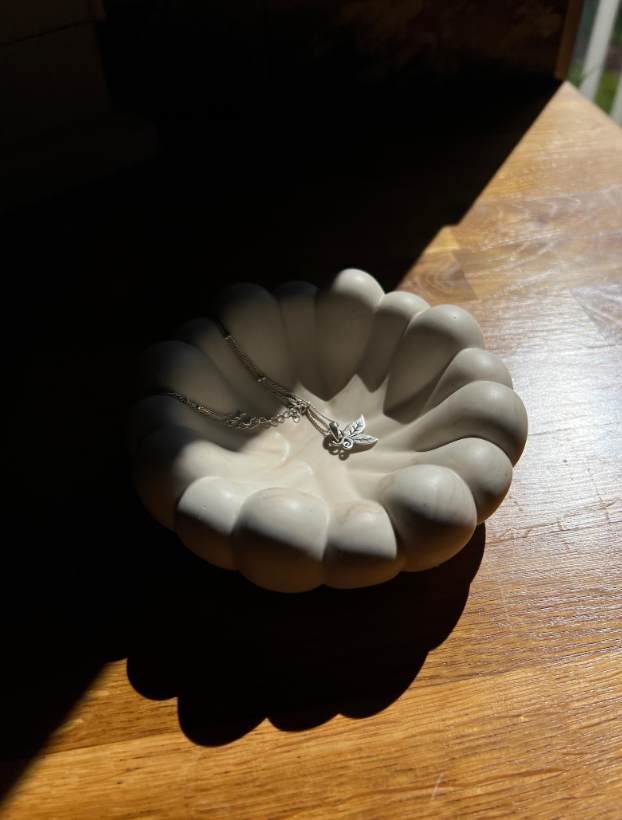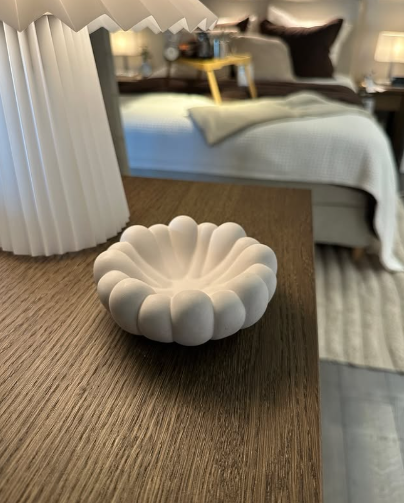 Sunny är ett mjukt vågformat litet fat inspirerat av solens strålar. Handgjort med omsorg – perfekt som diskret detalj på nattduksbordet, i hallen eller på sminkbordet.